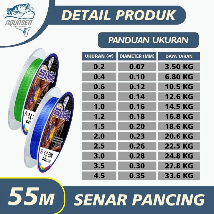 AQUASEA - Senar Pancing PE X4 Piranha 55m Jepang Senar Pancing P6 Super Kuat & Tahan Bahan PE