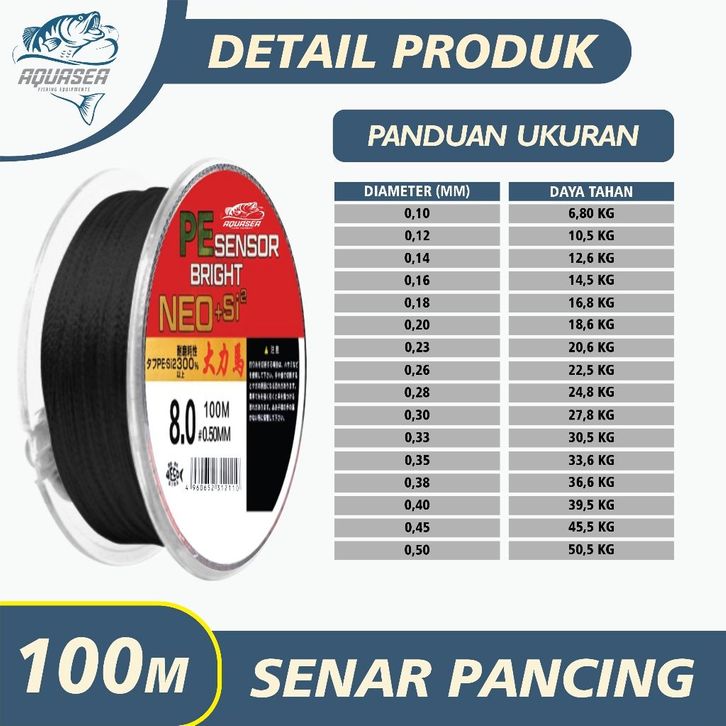 AQUASEA Tali Pancing 100m Senar Pancing PE Sensor Bright HITAM Sensor NEO+si2 Jepang