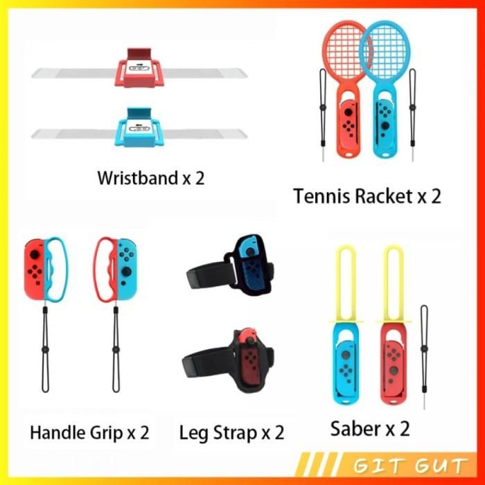 Nintendo Switch 10 in 1 Sports Game Accessories Set Bundle Grip Strap