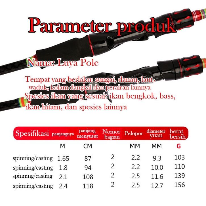 1.65m/1.8m/2.1m/2.4m Pancing Set Lengkap Murah Pancing 1 Set Lengkap Kuat Set Alat Pancing Murah Pancing 1 Set Mur