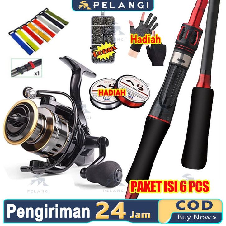 ?#Beli 1 Dapat 5 #?Max drag 10kg Joran pancing Set 1.65M Spinning Fishing Rod with 5.2:1 Reel Combo for Bass with lure
