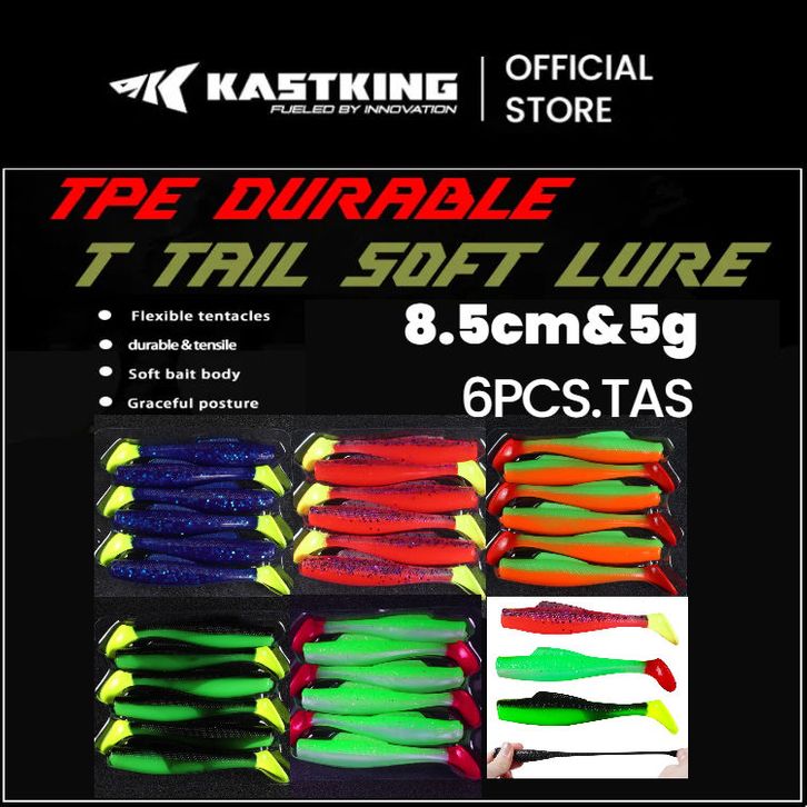 [OFFICIAL] Kastking Umpan Pancing (8.5cm/5g) TPR soft Lure bait T tail umpan lembut casting 1 paket