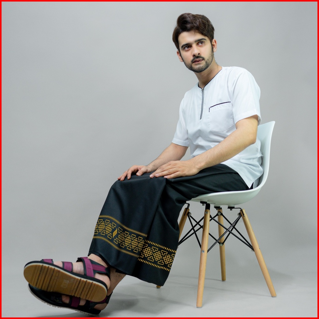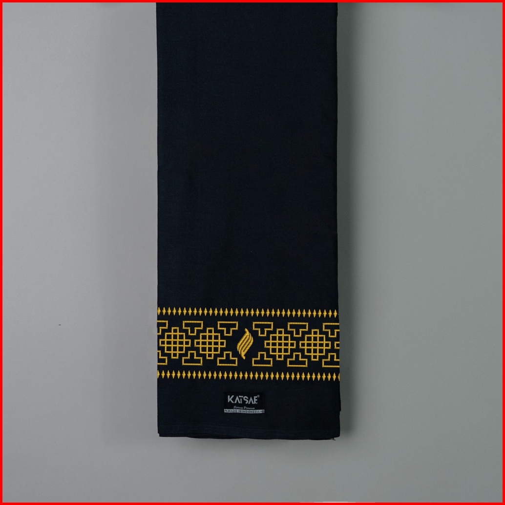 Katsae - Sarung Bordir Motif Mozaik Bordir Timbul Sarung Pria Dewasa Warna Black Sarung Sholat 100 Bordir Asli