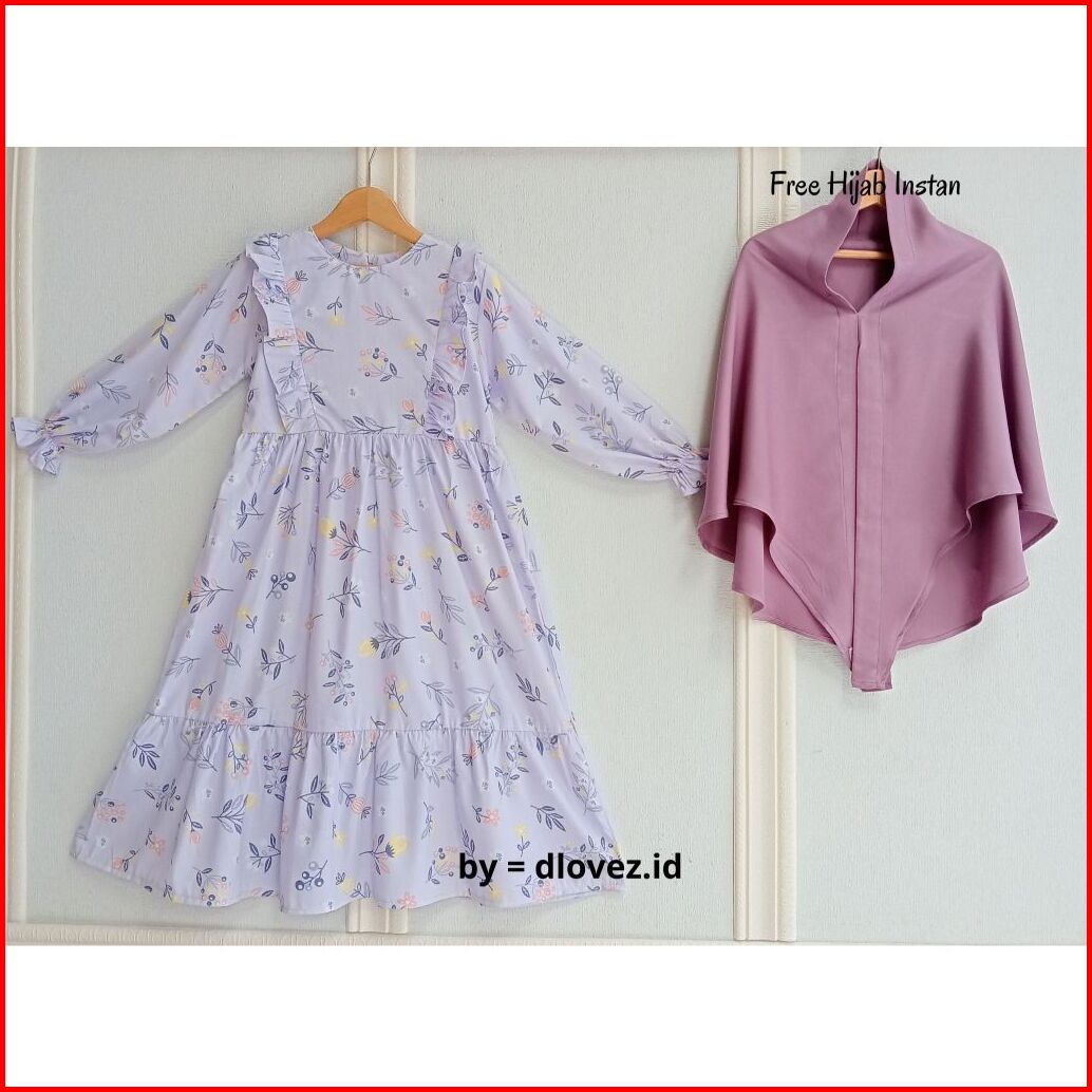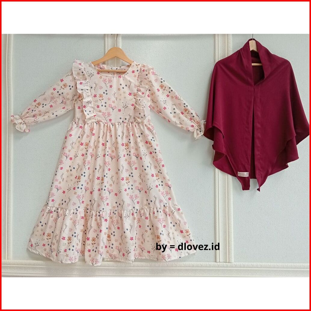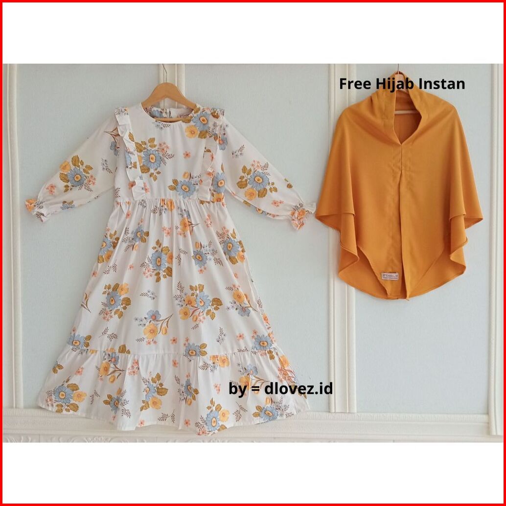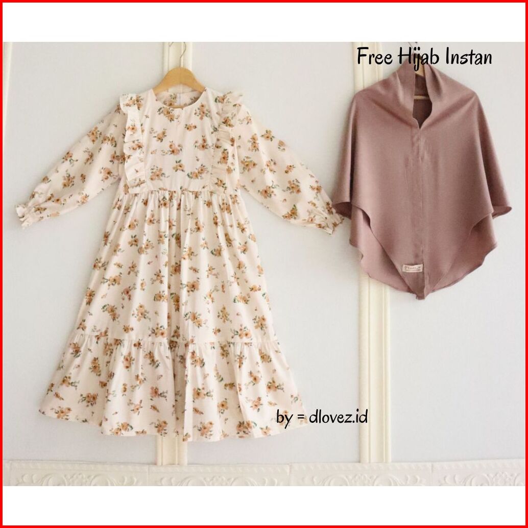 Set Gamis Anak Free Hijab 1 - 10 Tahun Kaira Set Gamis Dress