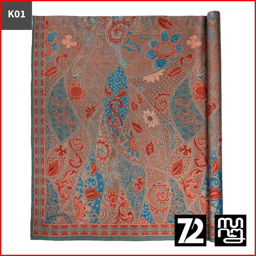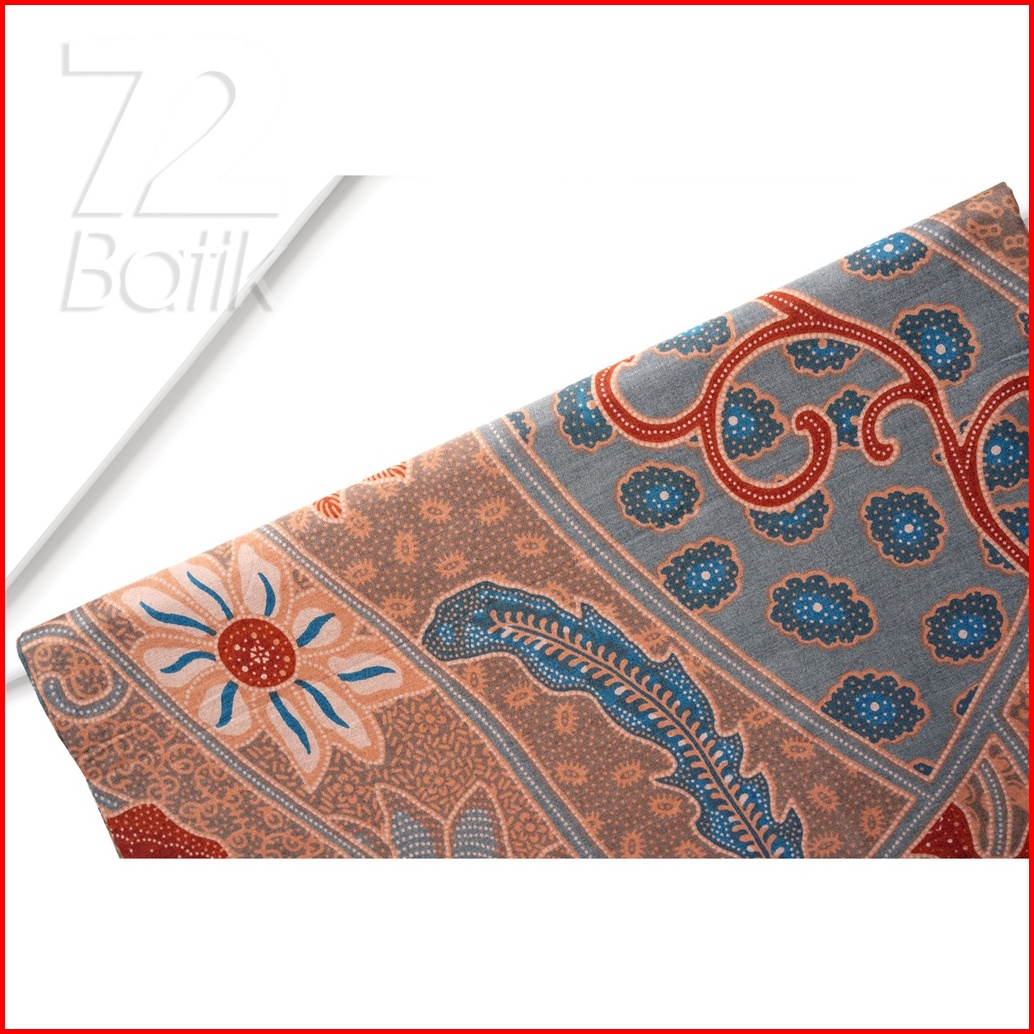 Kain Batik Premium Bahan Katun Motif Kembang Bali Warna Abu Biru 721163 Cap 72 Jarik Jarit Samping Kebat Panjang Batik K