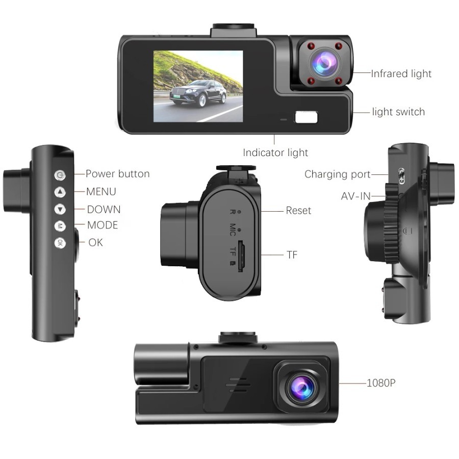 KAMERA MOBIL 3 KAMERA WIFI FHD LAYAR 2 INCH NIGHT VISION DASHCAM A22