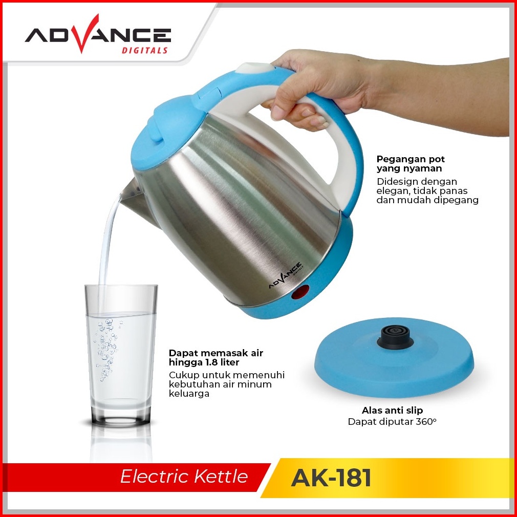 Advance Ak-181 Kettle Listrik Teko Listrik Kapasitas 1 8 Liter Hemat Listrik