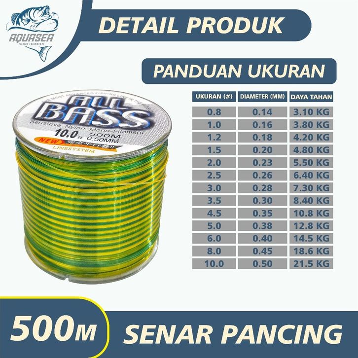 AQUASEA Tali Pancing ALL BASS Sensitive Nylon Mono-Filament 500M Bahan Nilon