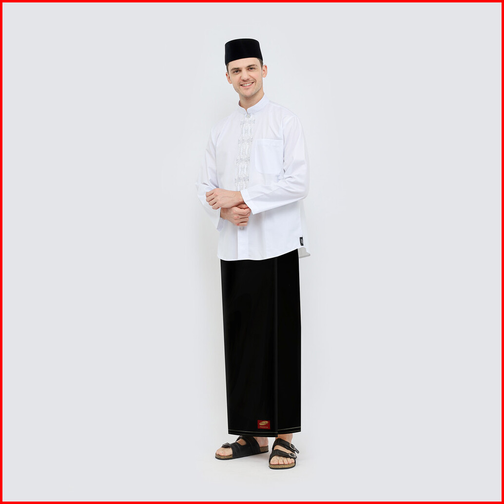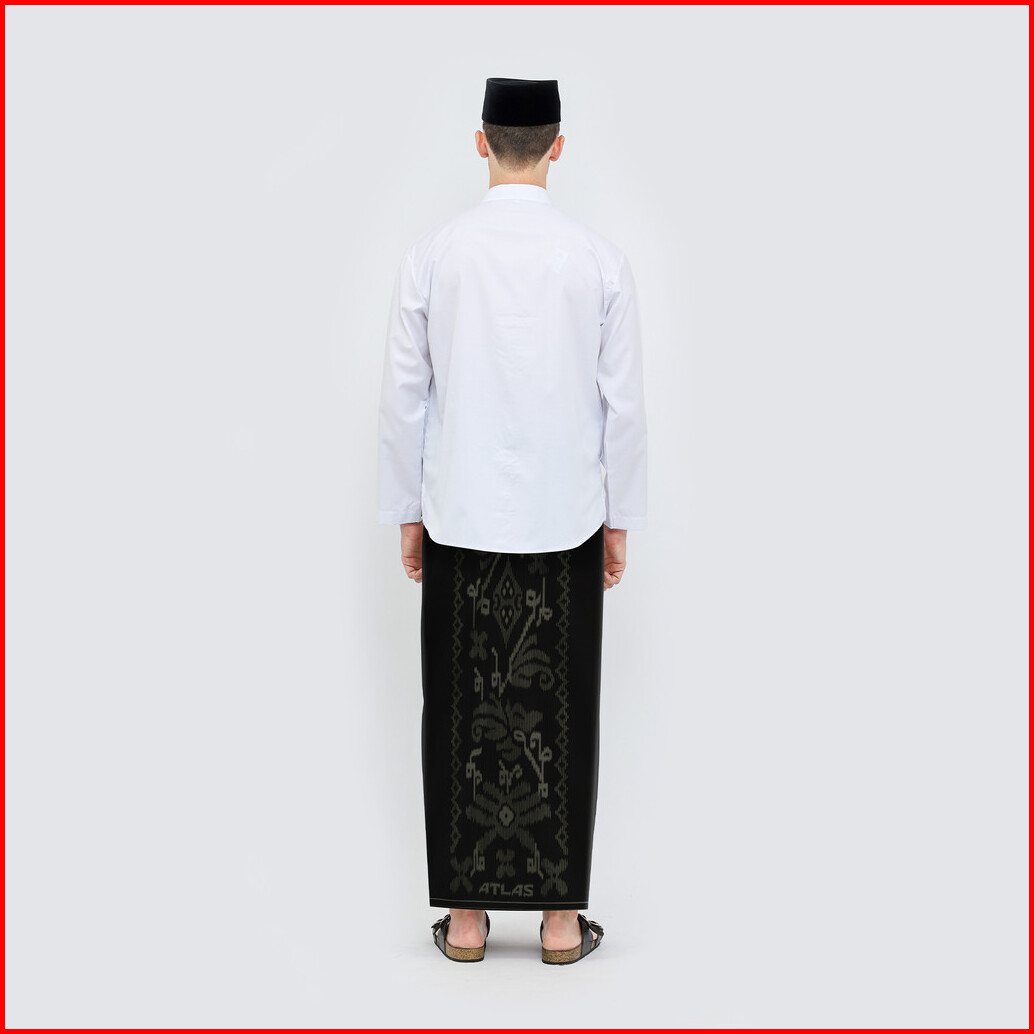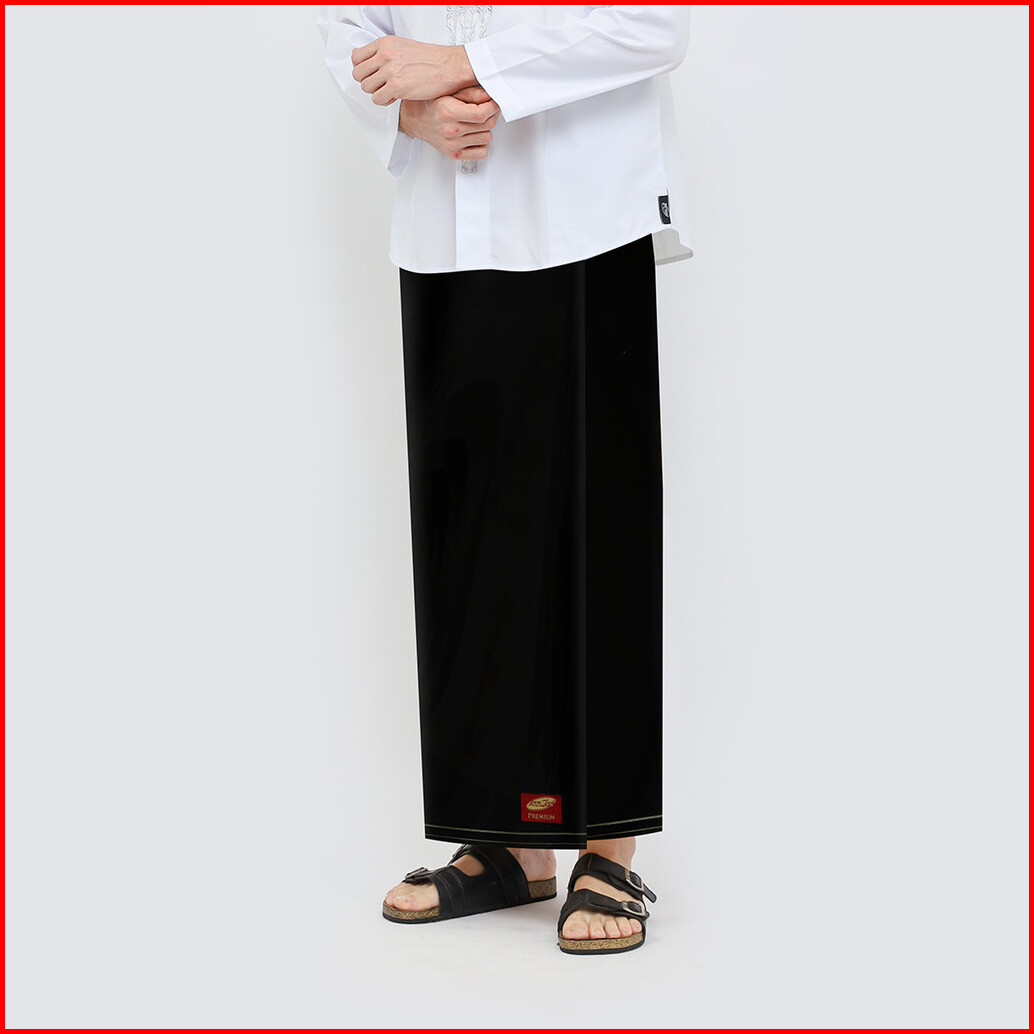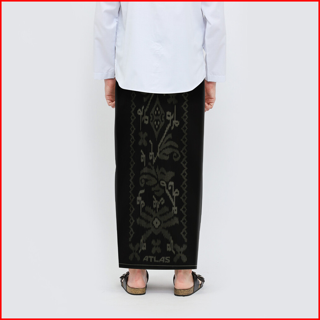 Sarung Atlas Premium 725 Tumpal Kembang Polos Warna Hitam 01