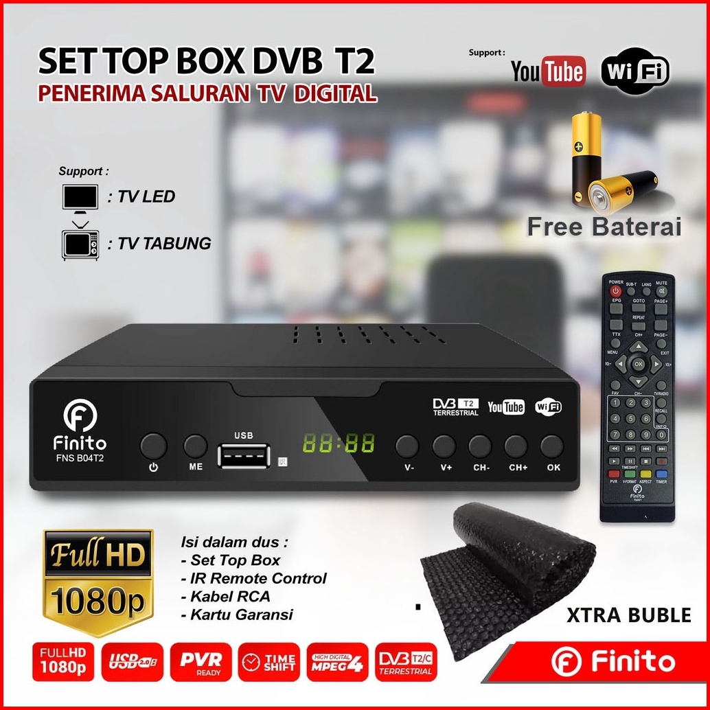 Finito Set Top Box Digital Plat Besi Anti Panas Bisa Youtube Kominfo Dan Sni Gambar Full Hd