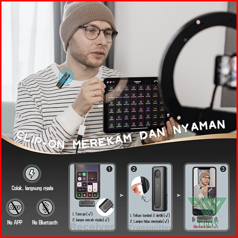 Tnw-y8 Wireless Microphone Clip On Mikrofon Wireless Lavalier Mic Mikrofon Youtuber Mic Wireless Untuk Youtube Facebook