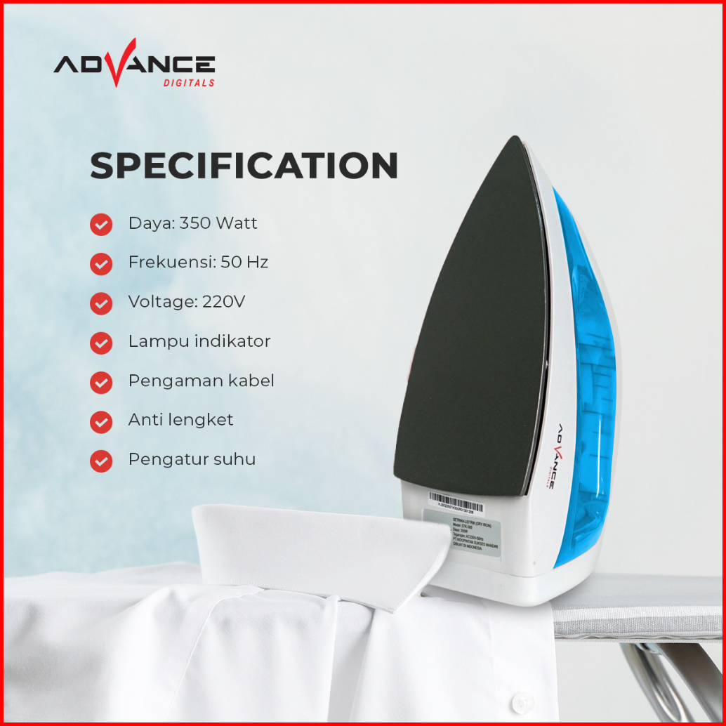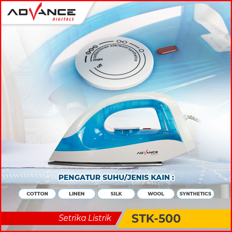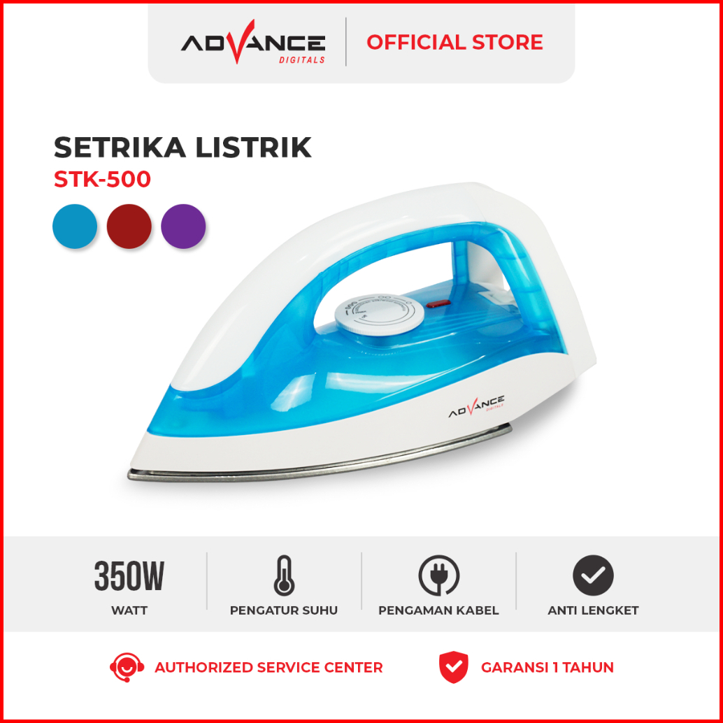 Advance Setrika Listrik Anti Lengket Stk-500 Hemat Listrik 350 Watt Garansi Resmi 1 Tahun