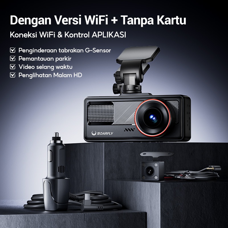 SOARFLY 4K HD DASHCAM MOBIL WIFI 3 CAMERAS PEREKAMAN LOOP PEMANTAUAN PARKIR 24 JAM PENGLIHATAN MALAM INFRAMERAH
