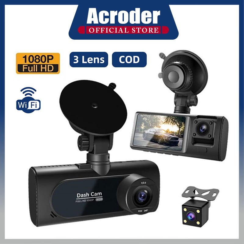 ACRODER DASH CAM WIFI 1080P HD 3 LENS NIGHT VISION 24 HOUR LOOP RECORDING MOTION DETECTION