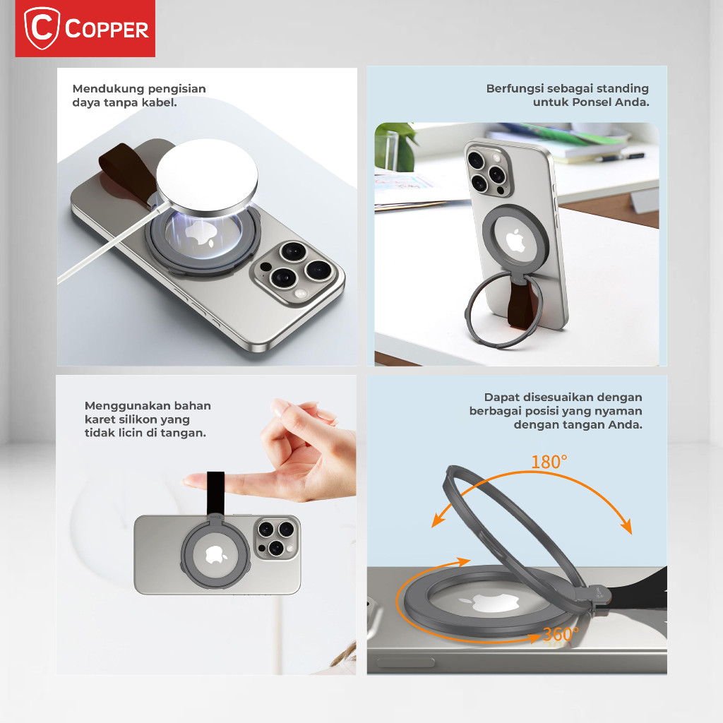 COPPER MAGNETIC RING HOLDER UNIVERSAL PHONE STRAP| METAL STAND | MAGSAFE READY
