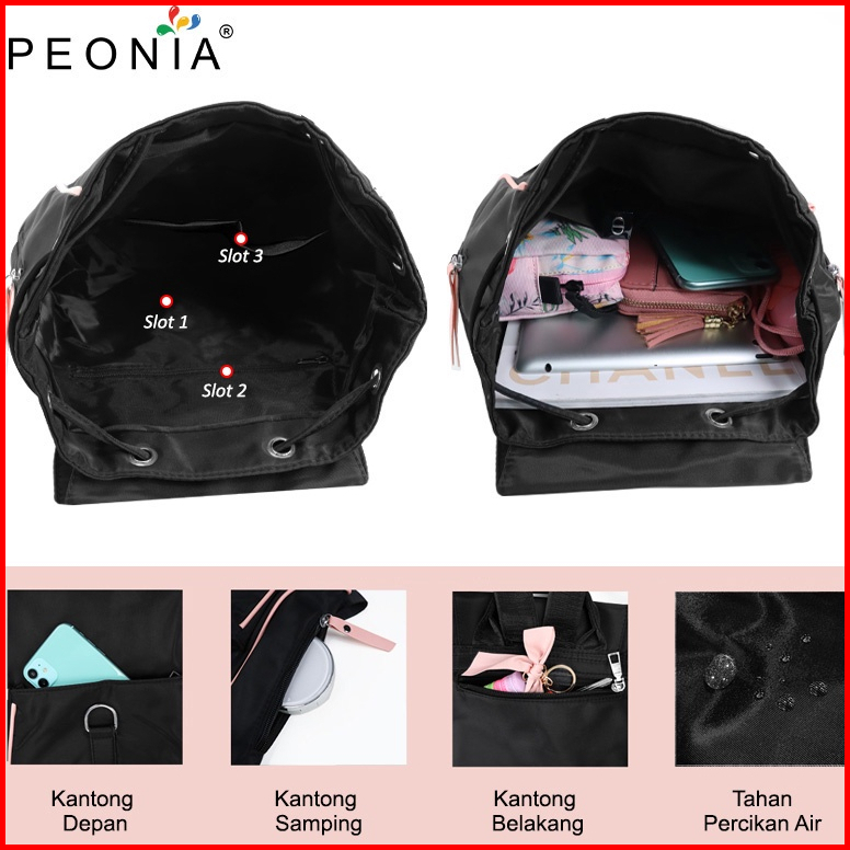 Peonia Pna Sonia Water Resistant Tas Ransel Wanita Import Korea Style Punggung Kantor Kerja Sekolah Kuliah Outdoor Trend