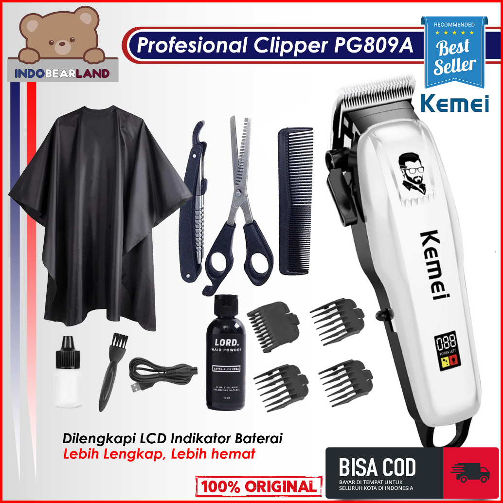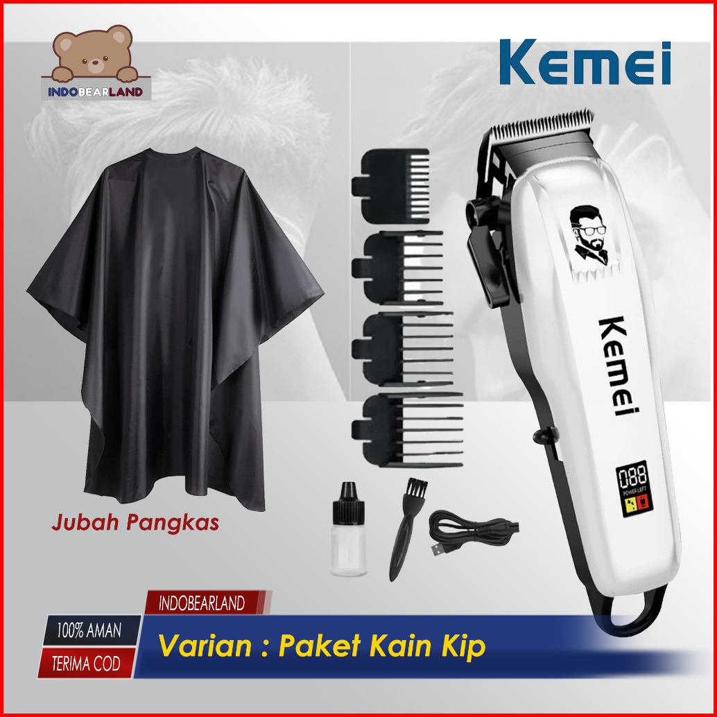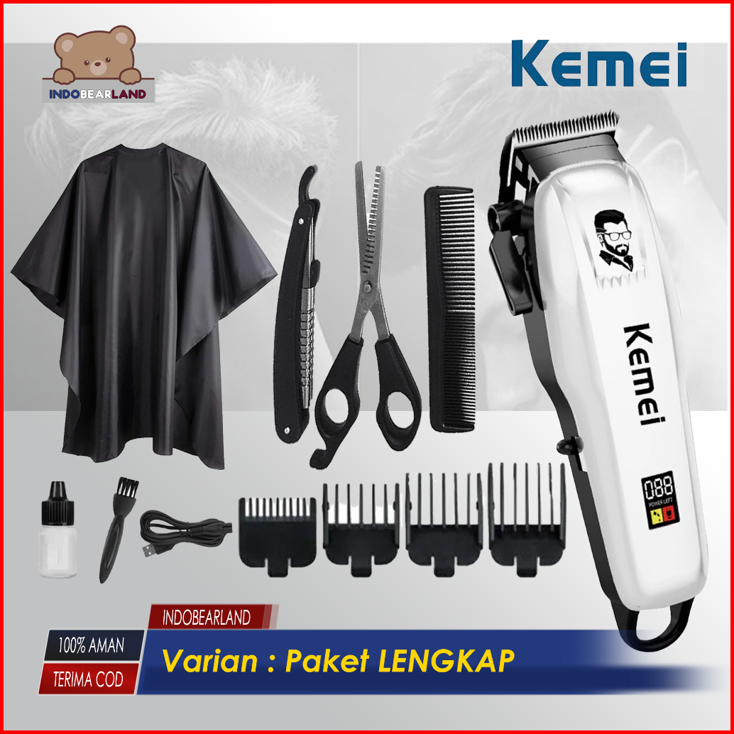 Mesin Cukur Rambut Elektrik Paket Lengkap Barbershop Kemei Cas Dengan Led Digital Indikator Original