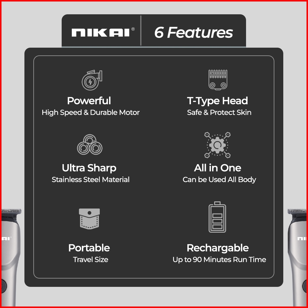 Nikai Trimmer Rambut Elektrik Shaver Alat Cukur Jenggot Kumis Tanpa Kabel Tahan Lama Presisi Multifungsi Barbershop Taja