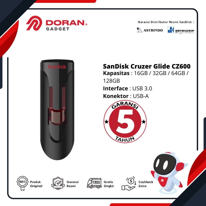 Flashdisk Flash Disk 16GB 32GB 64GB 128GB | 16 32 64 128 GB Sandisk Glide CZ600 - Garansi 5 Tahun