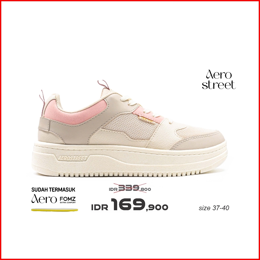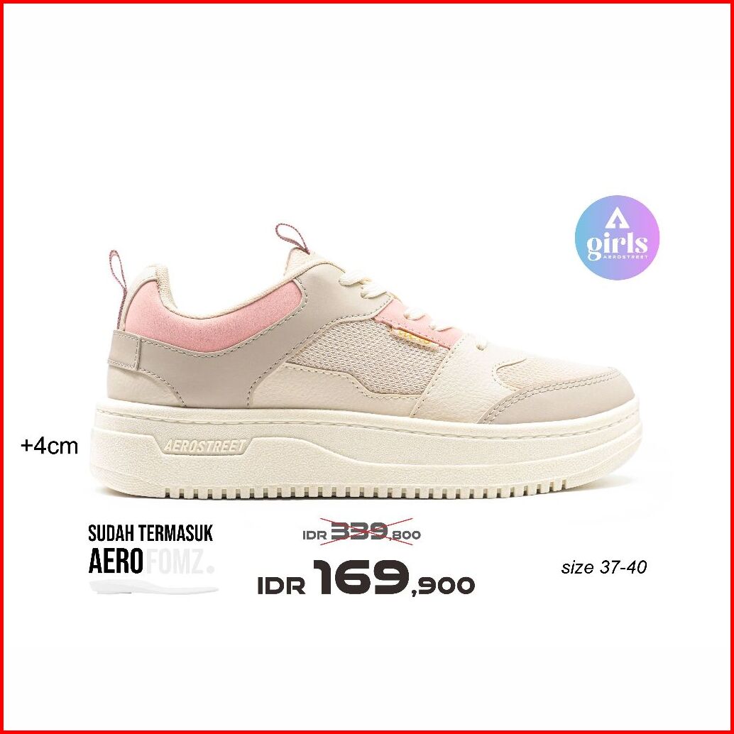 Aerostreet 37-40 Evelyn Putih Natural Krem Merah Muda - Sepatu Sneakers Wanita