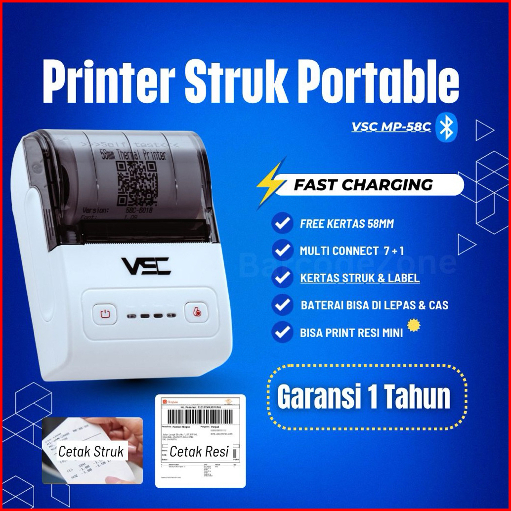 Printer Thermal Bluetooth Vsc Mp-58c Rpp02 58mm Support Moka Alamat - Printer Kasir