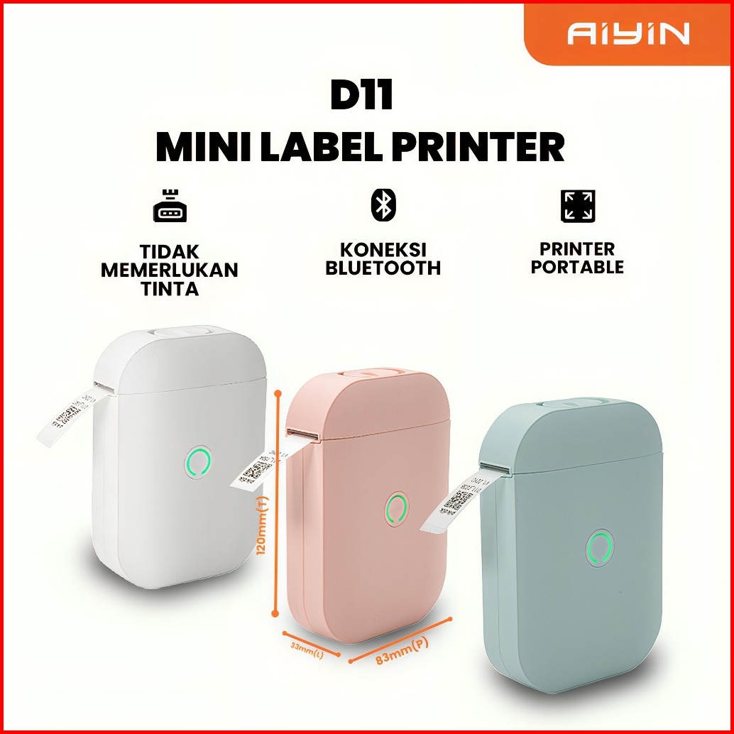 Aiyin D11 - Thermal Printer Pencetak Label Sticker Portable Mini Wireless Nirkabel Bluetooth