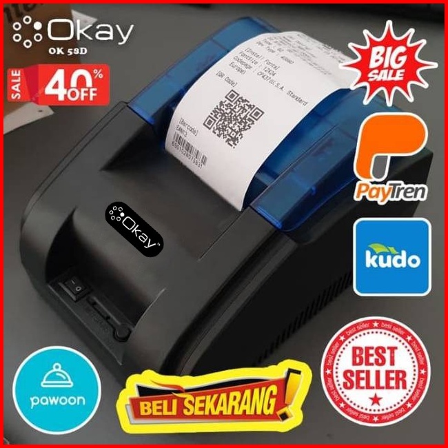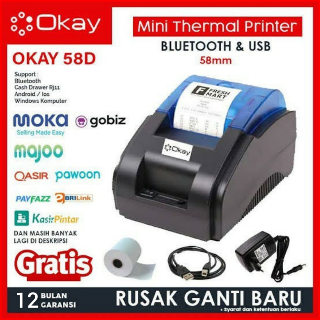 Okay Ok 58d Printer Bluetooth Printer Thermal Mini Printer Kasir Struk Thermal