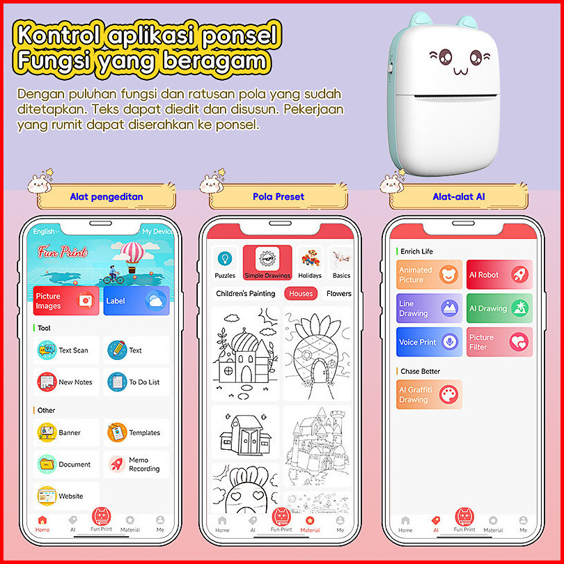 Gratis Kertas Cetakc9 Mini Thermal Printer Smart Wireless Bluetooth Mini Portable Tanpa Tinta Pocket Photo Printer 57mm