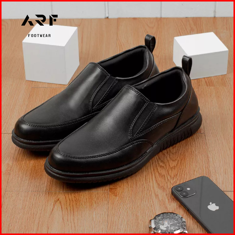 Arf Smith Black Sepatu Slip On Loafers Formal Kulit Pantofel Hitam Pria Wanita Kerja Kantor Kondangan Casual
