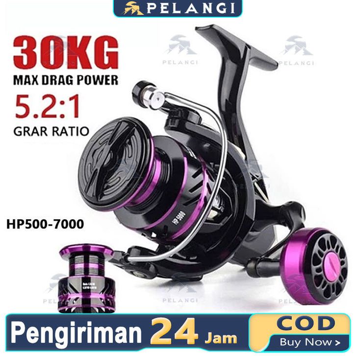 Reel Pancing Metal HP1000 - 7000 10 Kg (Stok Indonesia)/ Reel Pancing Tarikan Full Besi Murah Ungu Kuat/ Reel Ryobi/ T
