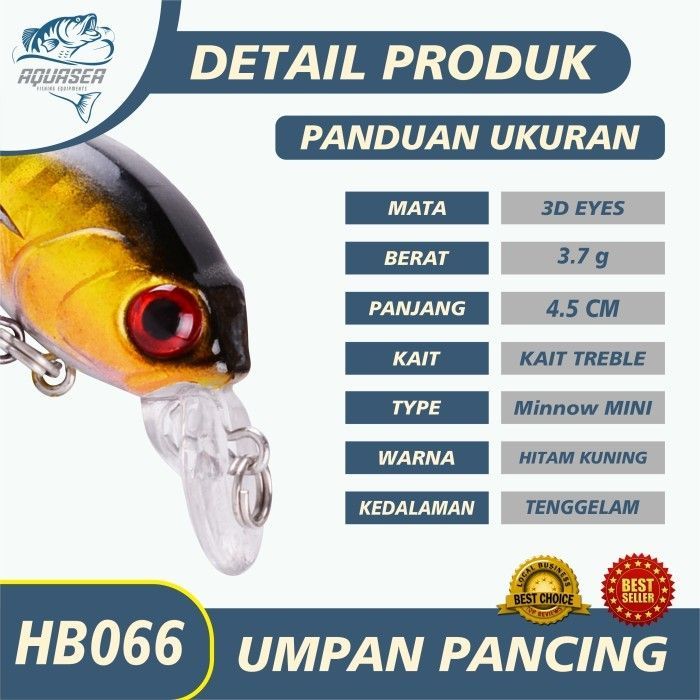 AQUASEA- Umpan Pancing HB066 Bentuk Ikan Kecil Panjang 4.5cm/3.7g