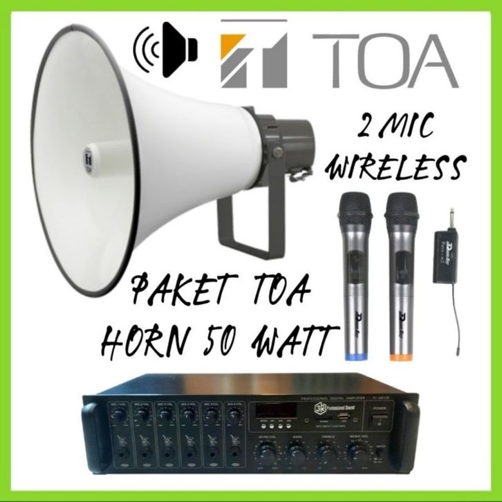 Paket Sound Corong TOA Horn 50 Watt + Amplifier, 2 Microphone Wireless