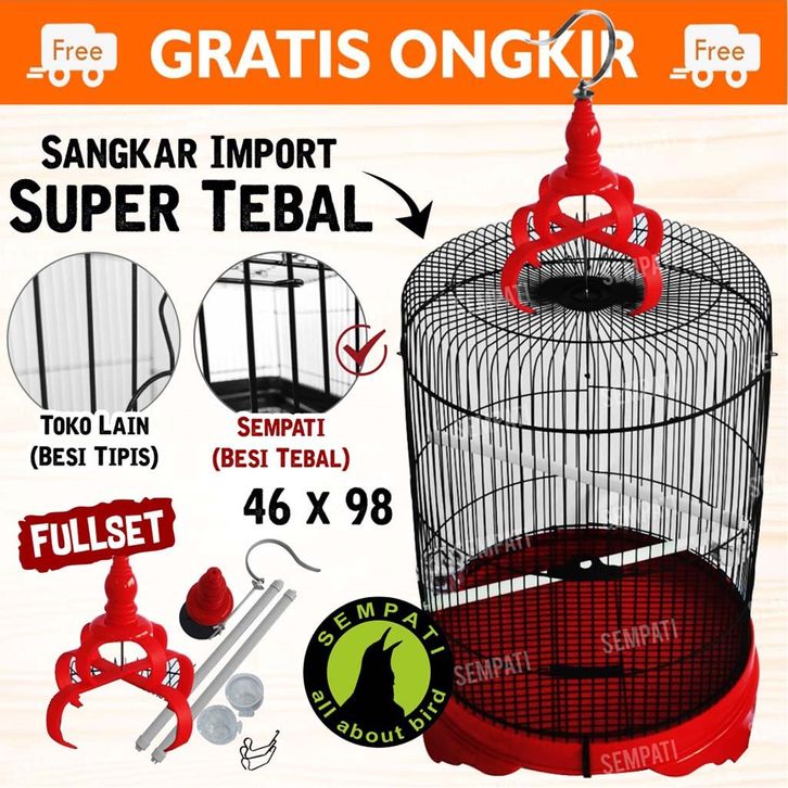 SEMPATI Sangkar Kandang Burung Murai Jumbo Fullset 46cm Tebok Pvc Tebal Besi Import Sangkar Kandang Burung Murai Poksay