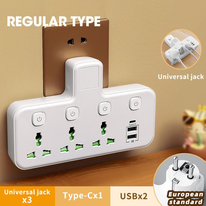 Stop Kontak Stop Kontak Multiprise Stopkontak AC dengan USB Charge Terpisah & Switch Tombol - Adaptor Plug EU Daya Ting