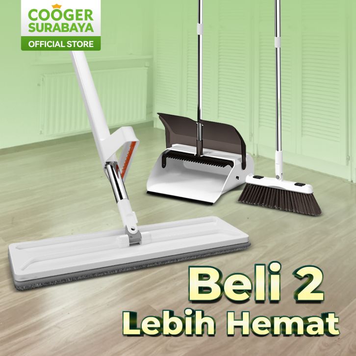 Sapu Sapu PAKET HEMAT COOGER SURABAYA Set Sapu dan Pengki Lipat Luxury + Alat Pel Lantai Microfiber Berdiri Otomatis Al