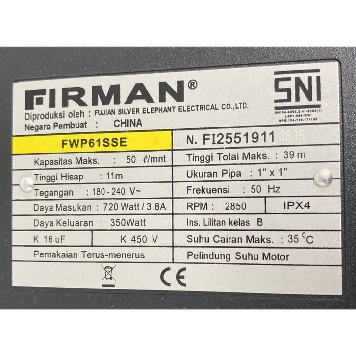Firman FWP 61 SS Pompa Semi Jet Stainless