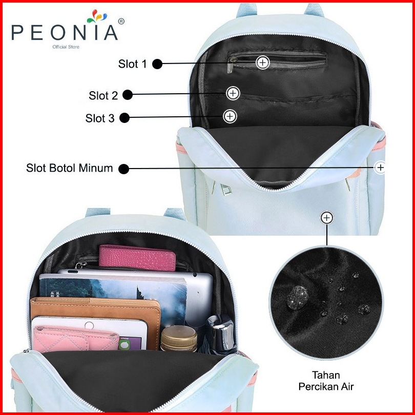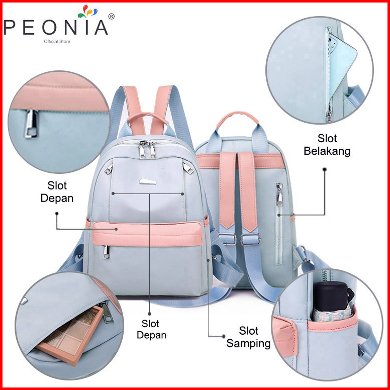 Peonia Pna Joana Water Resistant Tas Ransel Wanita Import Korean Style Punggung Kantor Kerja Sekolah Kuliah Outdoor Tren