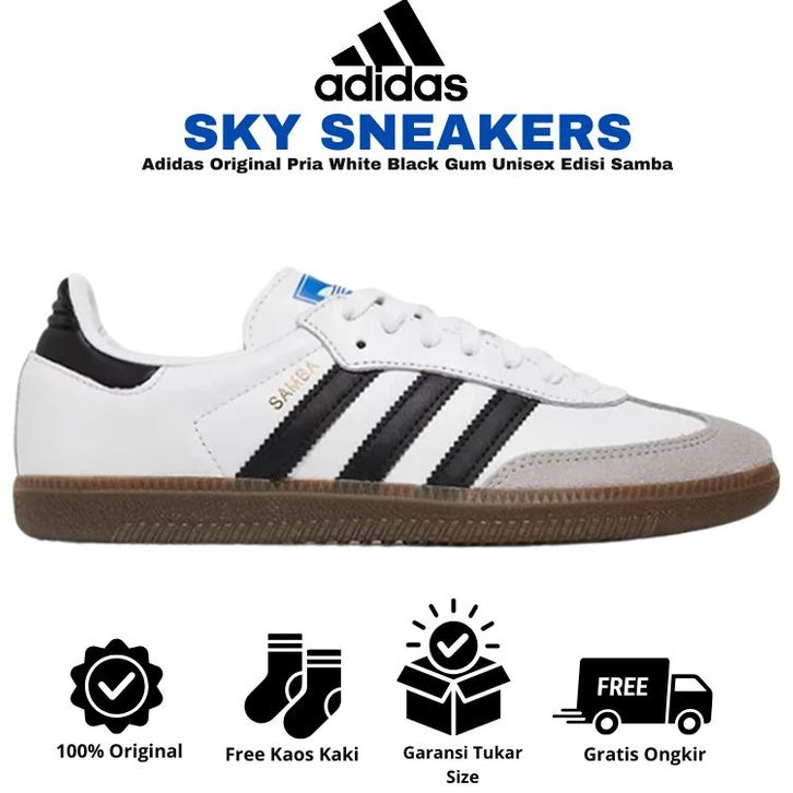 [Mall] SEPATU ADIDAS ORIGINAL PRIA WHITE BLACK GUM UNISEX EDISI SAMBA STYLISH SEPATU SNEAKERS TERBARU TERLARIS