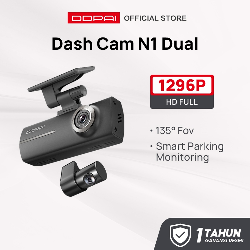 DDPAI N1 DUAL DASH CAM 1296P HD FULL FOV135 DEPAN DAN BELAKANG SMART PARKING MONITORING