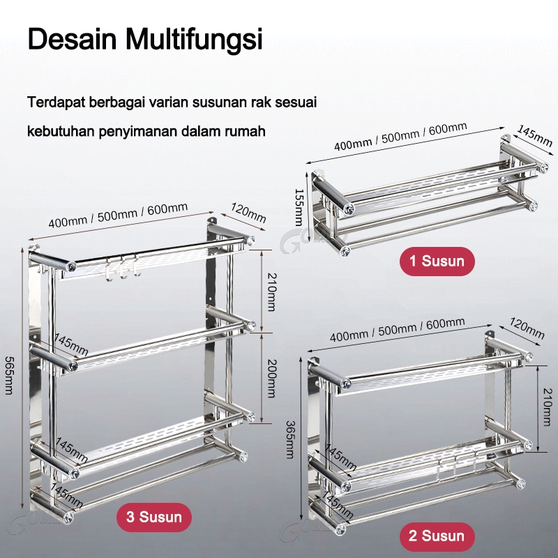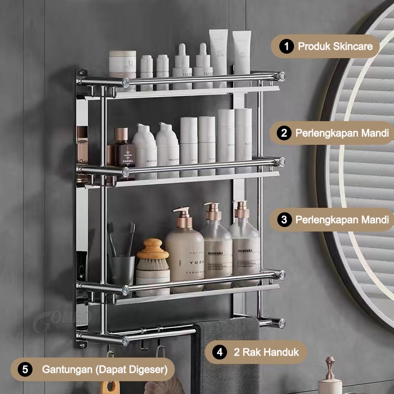 Rak Sabun Dinding Kamar Mandi – Rak Toilet & Handuk Serbaguna, Stainless Anti Karat, Rak Gantung & Tempel