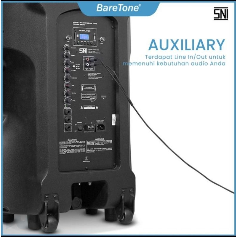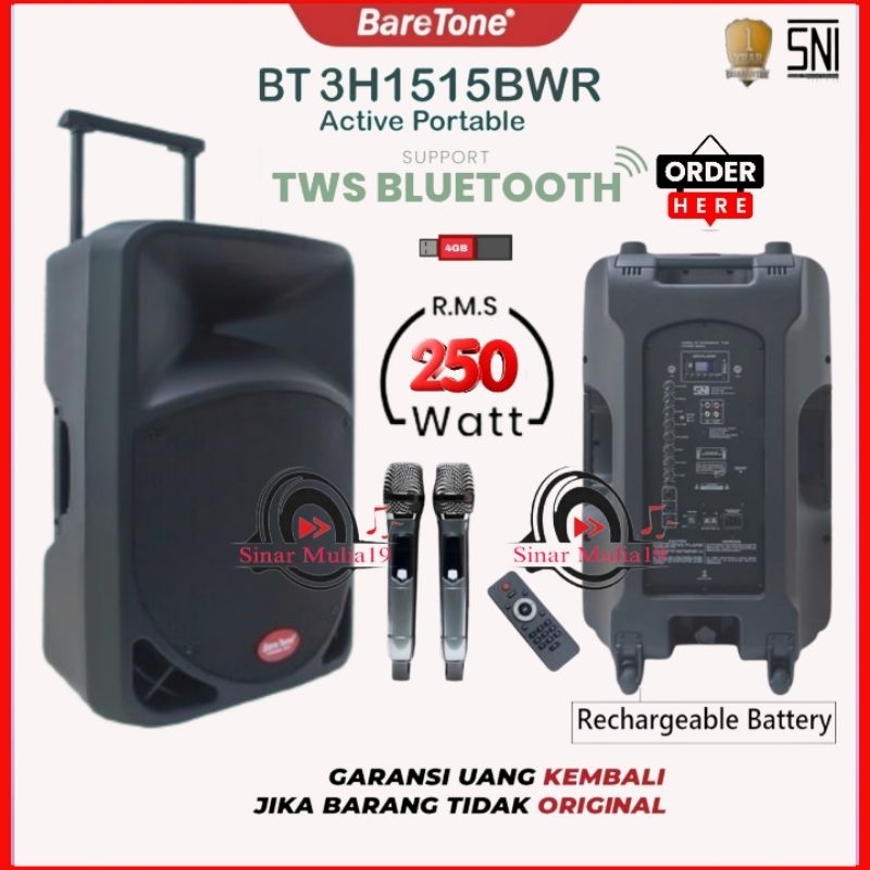 Speaker Portable Aktif 15 Inch RMS 250 Watt BARETONE BT-3H1515BWR / 15BWR Original Bluetooth TWS