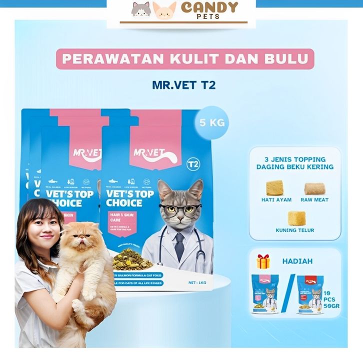 Makanan Kucing Kering Mr.vet T2 Untuk Perawatan Kulit Dan Bulu 5 Kg Best Seller Termurah Candy Pets