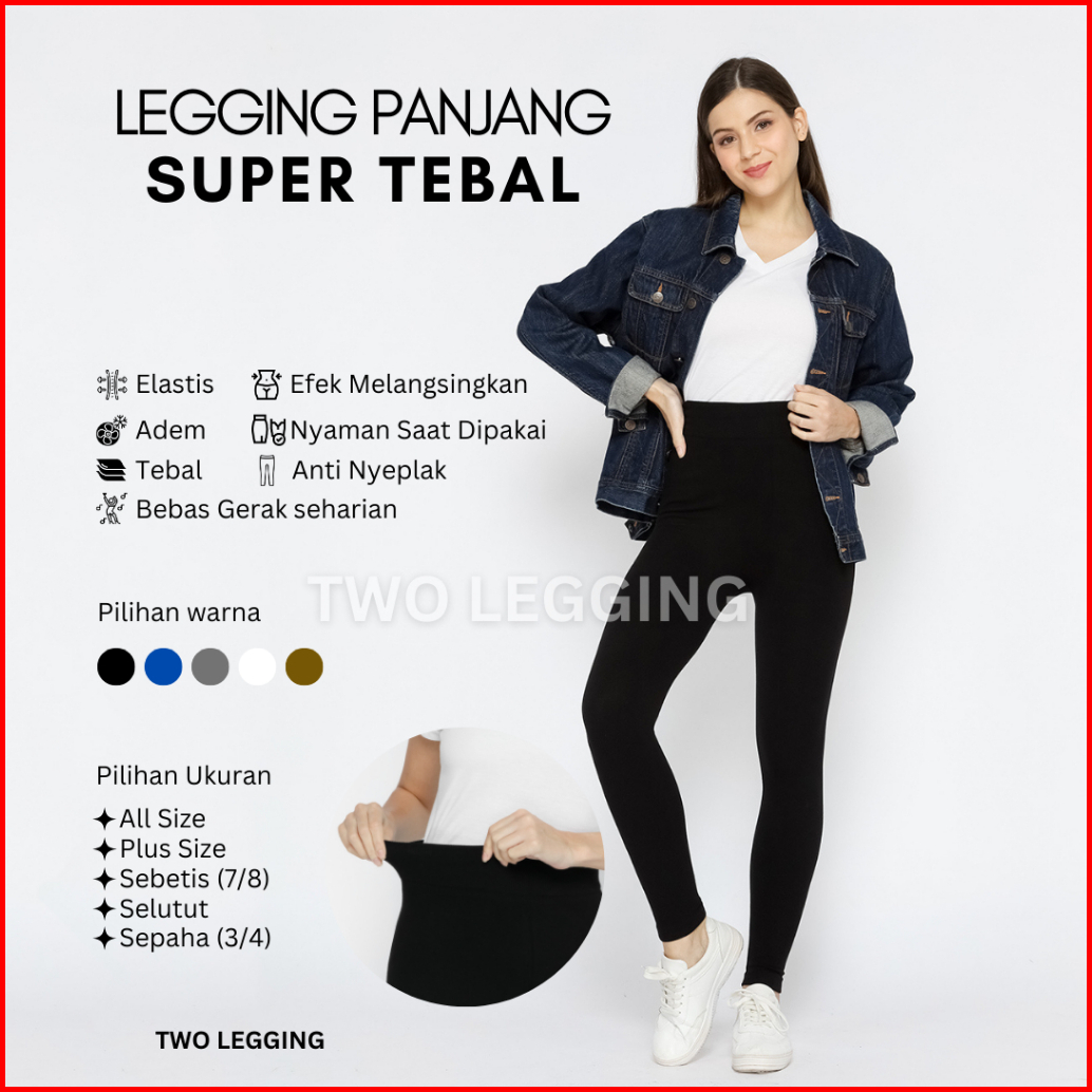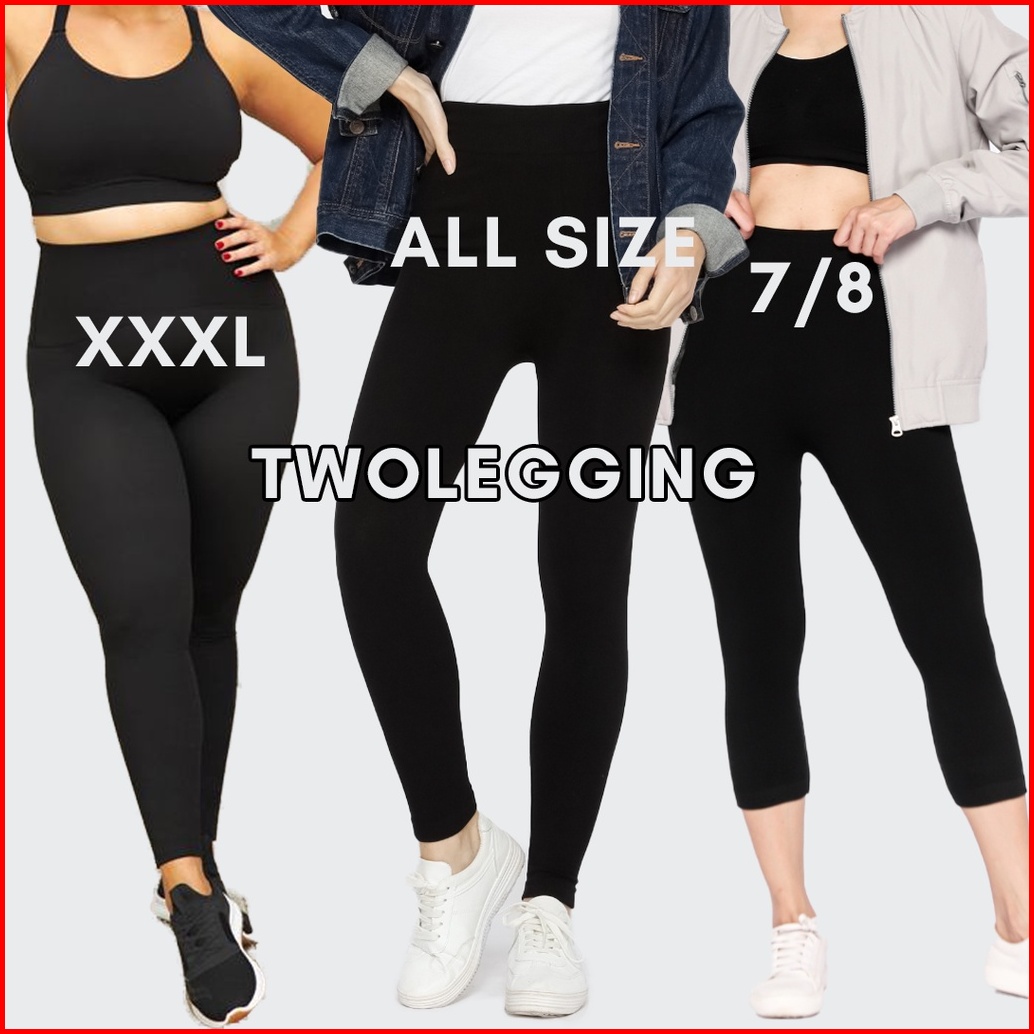 Legging Highwaist Wanita Fleece Tebal Polos Regular Plus Size