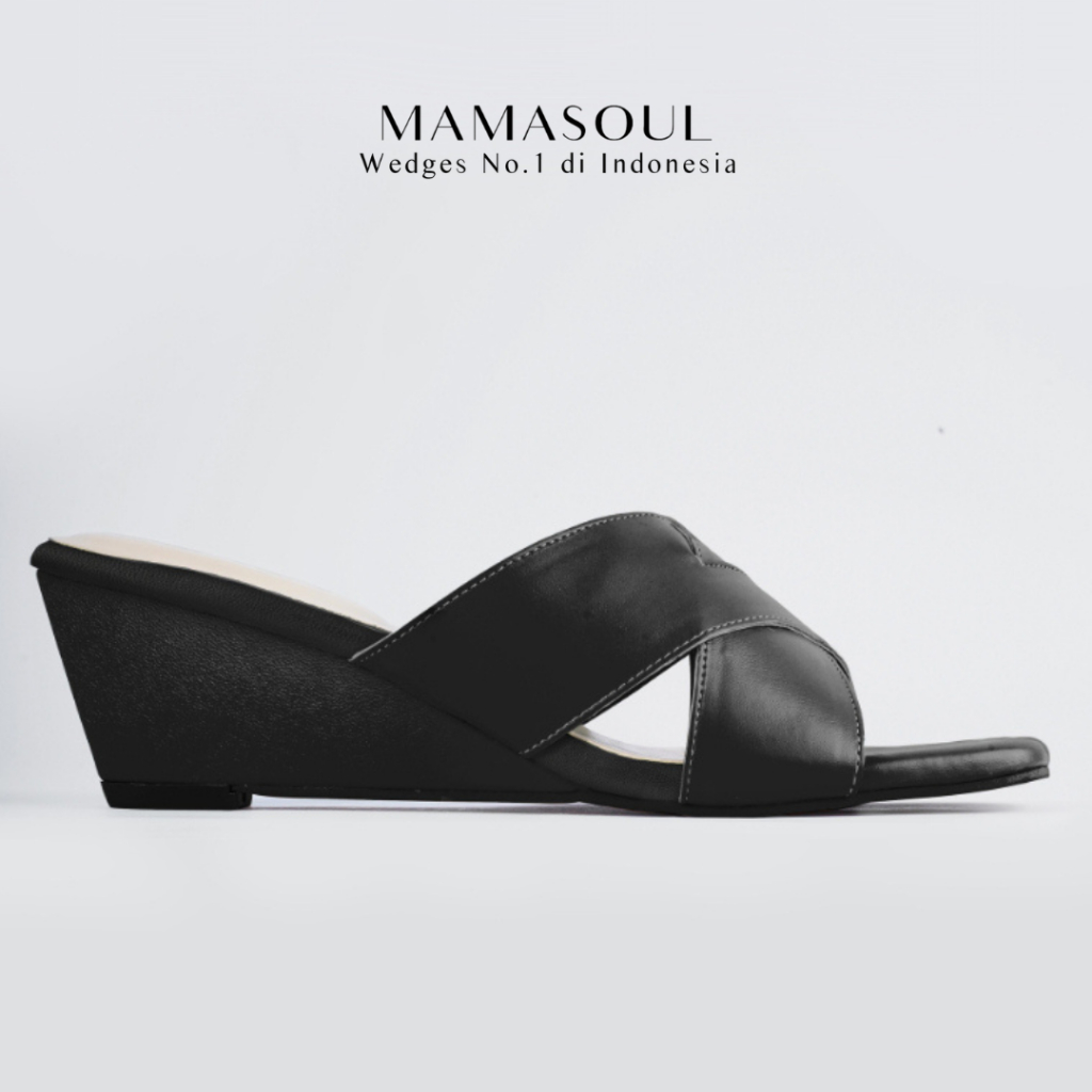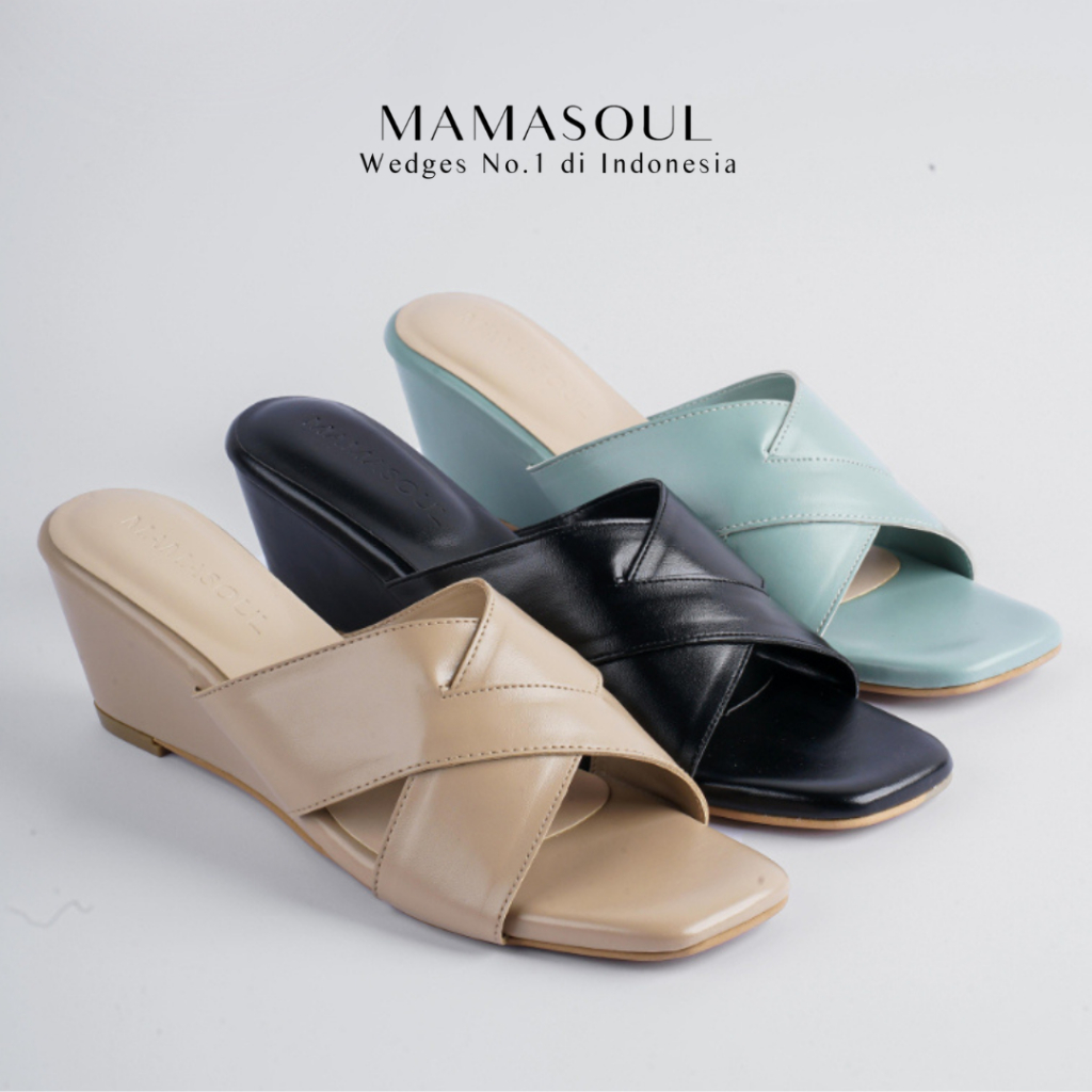 MAMASOUL ANYA Wedges Sepatu Wanita Tinggi 5 cm sendal sandal klom sandal high heels slip on sepatu wanita kantoran slide