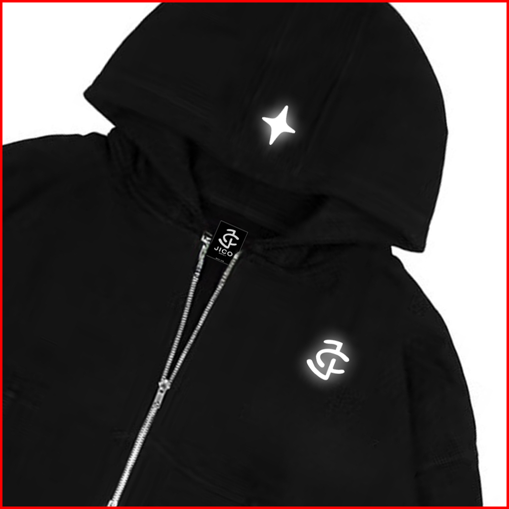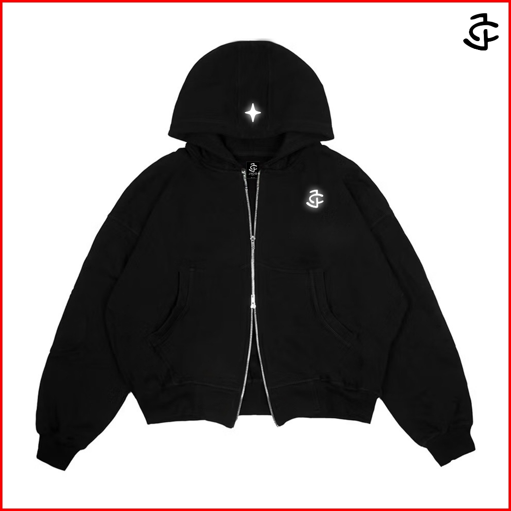 Jico - Sweater Hoodie Boxy Oversize Double Zip Sablon Menyala Logo Jc