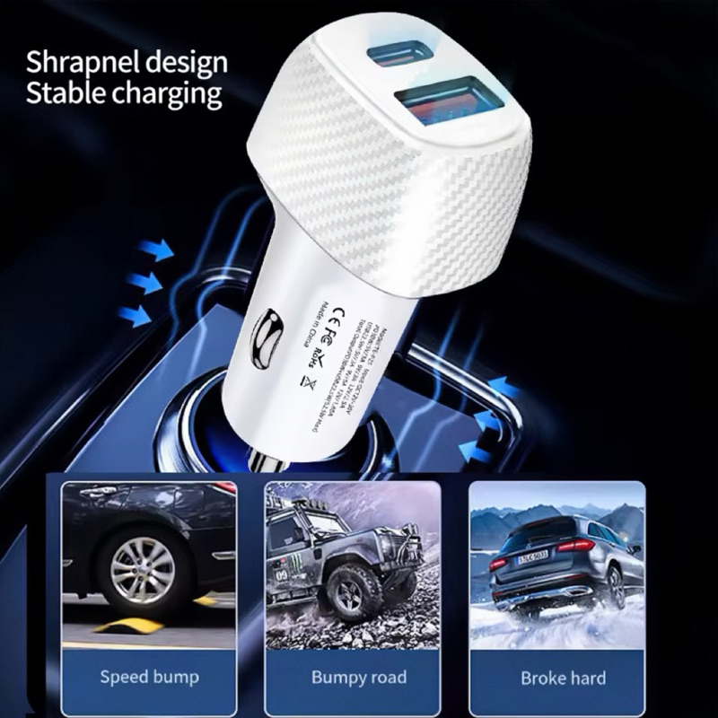 Car Charger Mobil Charger Motor Fast Charging 2 Output USB A+USB C