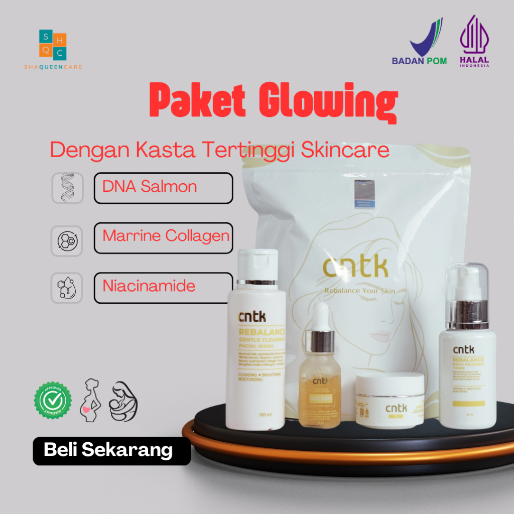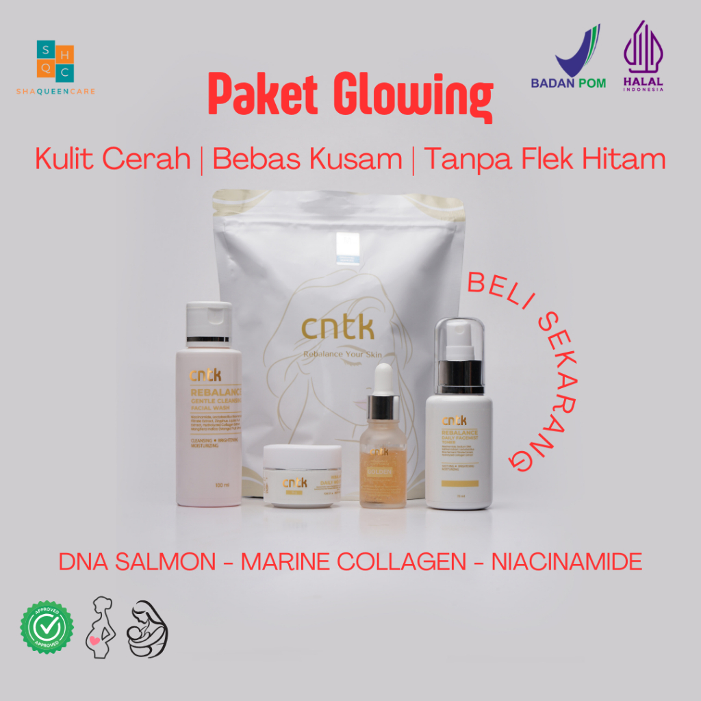 CNTK 4 In1 Skincare Instan Glowing Untuk Wajah Mulus, Glowing, Kulit Cerah & Bebas Kusam Dengan DNA Salmon Marine Collagen Niacinamide