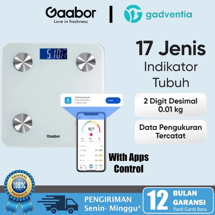 Timbangan Badan Gaabor Smart Digital Fat Scale Layar LED Timbangan Berat Badan Komposisi Tubuh Dengan App Control Anti