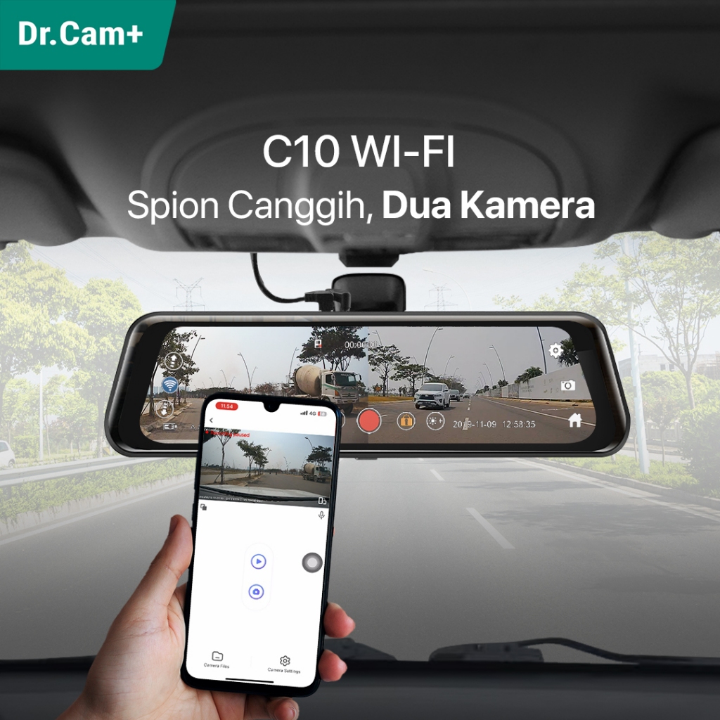 DR.CAM+ C10 WIFI ALPHA DASHCAM SPION DVR MOBIL 9.3" - STREAMING REAR VIEW MIRROR