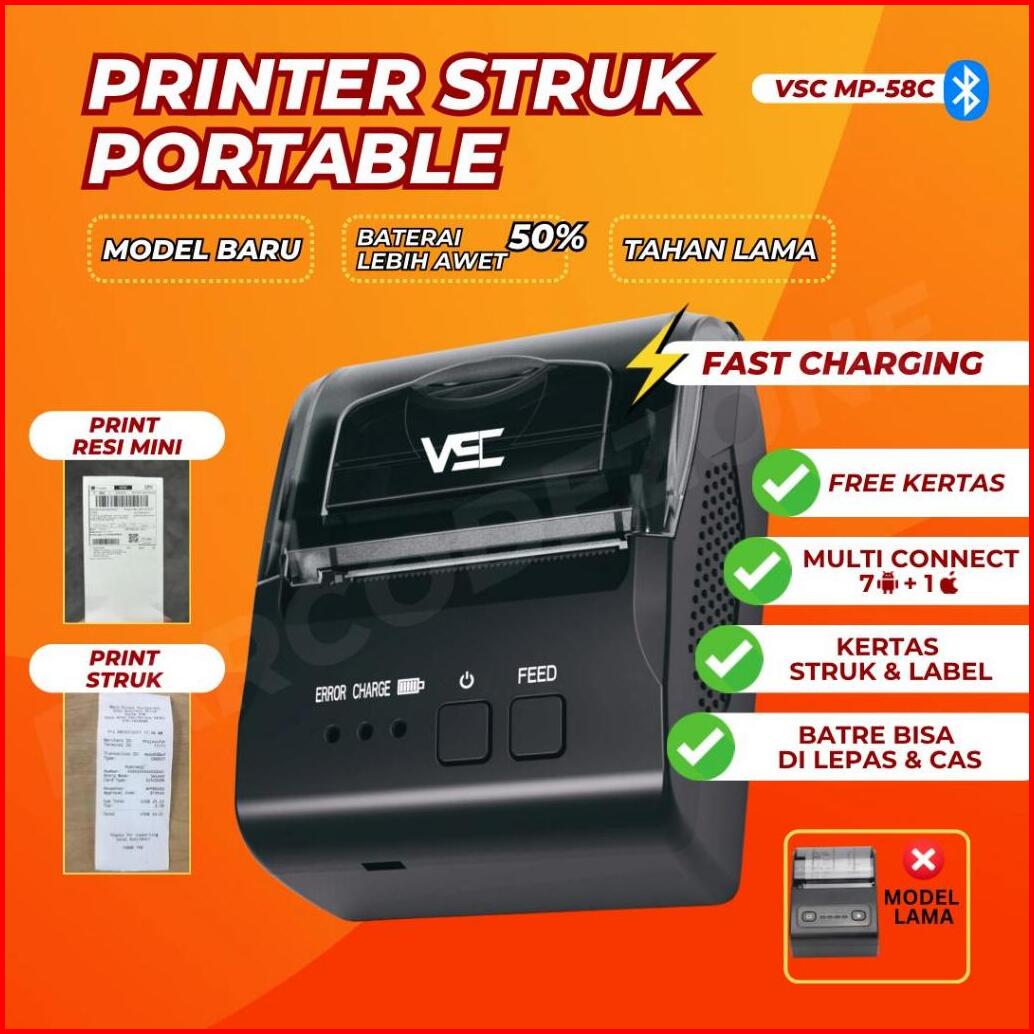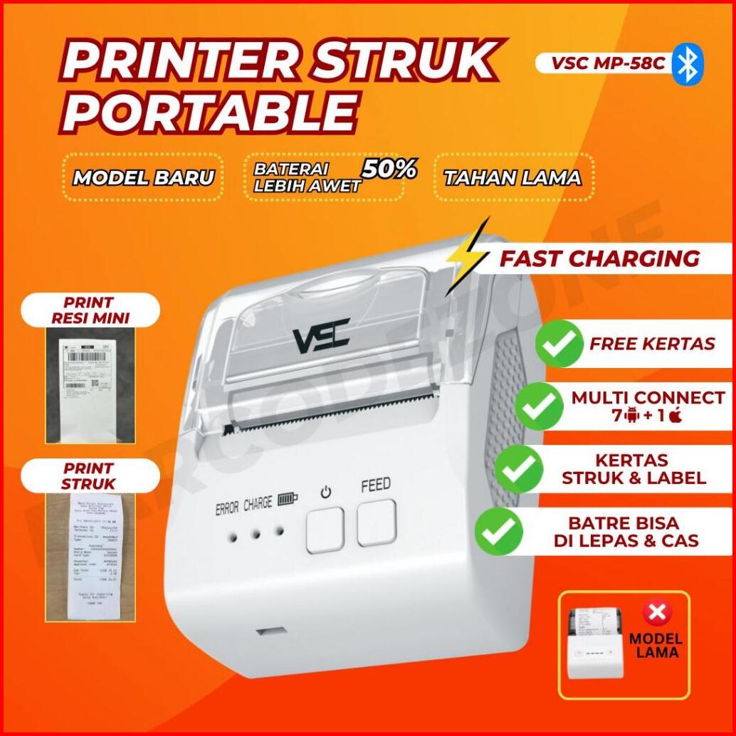 Mobile Printer Bluetooth Thermal Receipt Ppob Kasir 58mm Vsc Mp-58c - Print Alamat Thermal